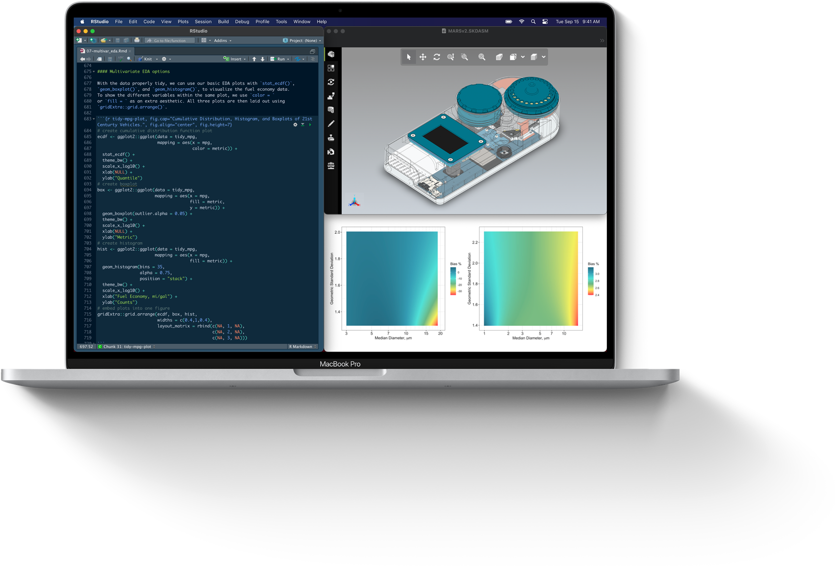 MacBook Pro. Le Mac offre toute la puissance dont le docteur Volckens a besoin pour analyser des volumes considérables de données sur la qualité de l’air et générer de saisissantes visualisations de ses découvertes sur des tableaux de bord interactifs. Simultanément.