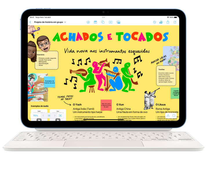 Reorganize planilhas, edite apresentações no Keynote e faça anotações importantes. O Magic Keyboard Folio tem um teclado confortável para digitar e um trackpad para tarefas mais precisas2.