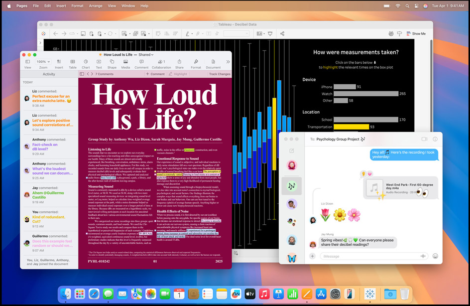 Multitasking mit Pages, Tableau und Nachrichten auf dem Mac