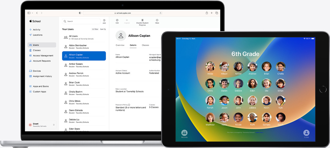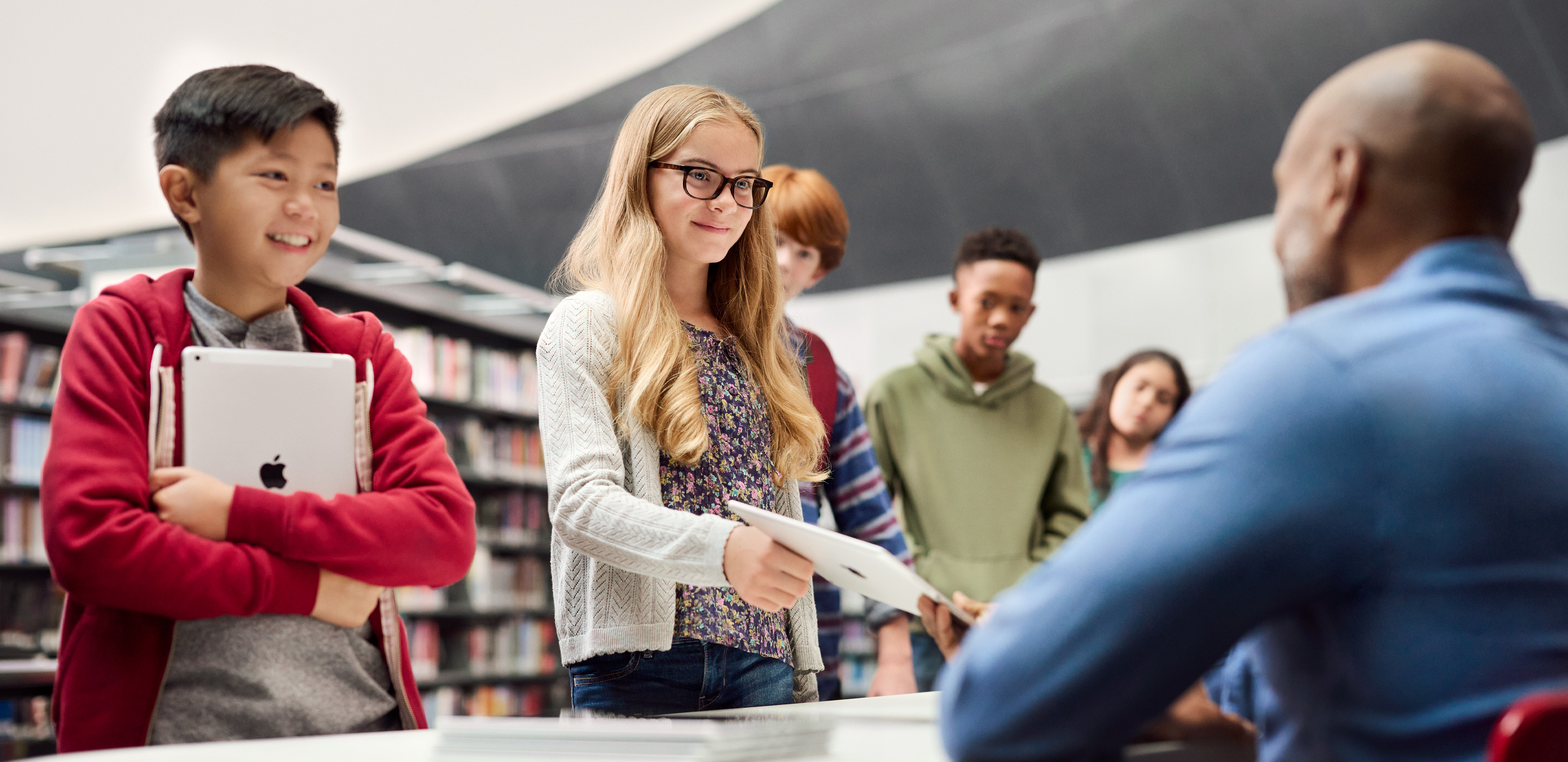 Apple Geräte nutzen leistungsstarke Technologien. Und IT Teams sparen Zeit. Egal, ob beim Unterricht in der Schule oder online – das iPad und der Mac integrieren sich nahtlos in jede Lernumgebung.