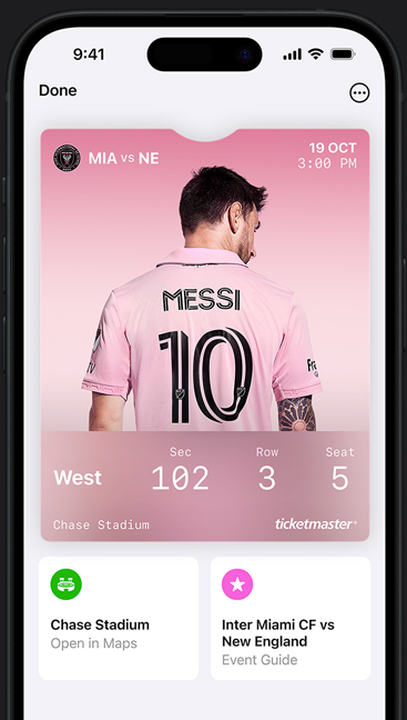 The Wallet app lives right on your iPhone. It’s where you securely keep your boarding passes, event tickets and more — all in one place. And it all works with iPhone or Apple Watch, so you can take less with you but always bring more.