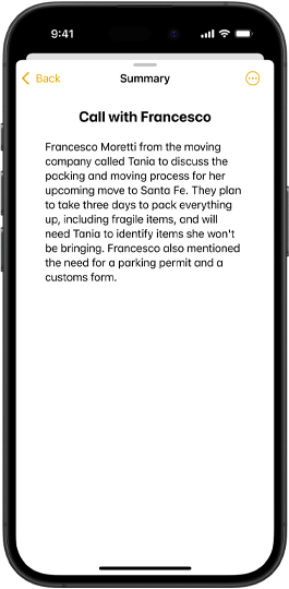 Get the short version of lengthy voicemails, record and summarize Notes and calls, and summarize an email in Mail with a tap.