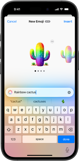 Produce fun, original images with Image Playground right in your apps. Try out styles like animation, illustration, and sketch, and discover additional ChatGPT styles. Have even more control when making images inspired by family and friends using Genmoji.3