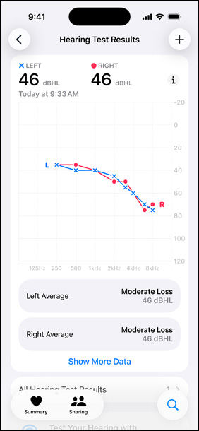 Konfidenciāli, droši un vienkārši. Visi dzirdes testa dati ir konfidenciāli un droši glabājas tavas ierīces Health aplikācijā. Vari atkārtot testu, kad vien vēlies, sekot savas dzirdes izmaiņām laika gaitā, lejupielādēt testa rezultātus un lasīt noderīgus rakstus par dzirdes veselību.