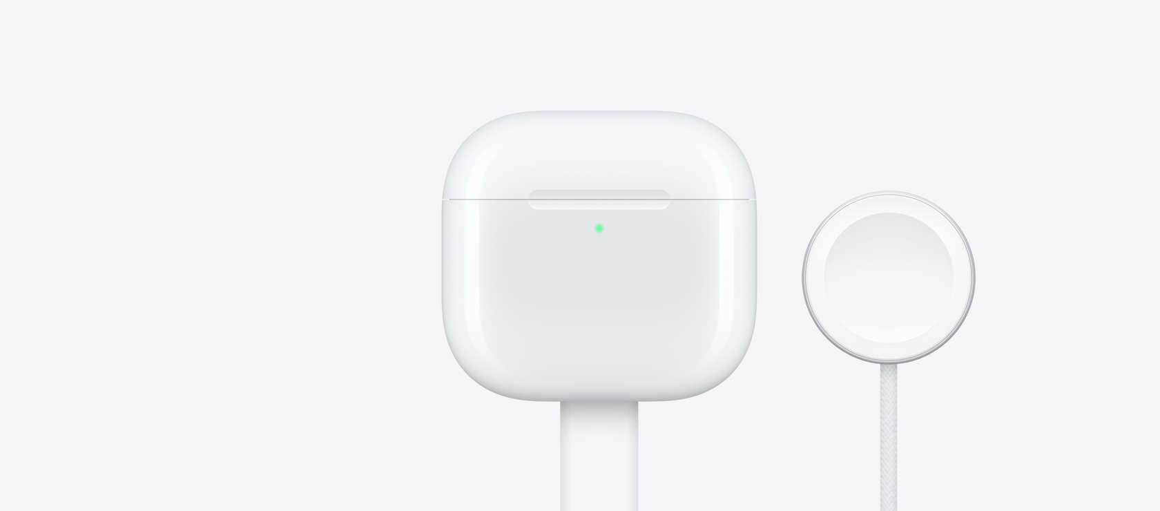 خيارات شحن لاسلكي جديدة. يمكنك شحن علبة AirPods 4 مع ميزة إلغاء الضجيج النشط باستخدام شاحن Apple Watch أو شاحن معتمد من Qi.