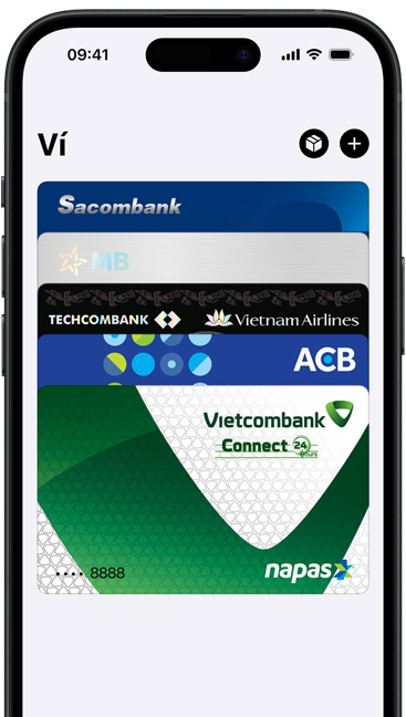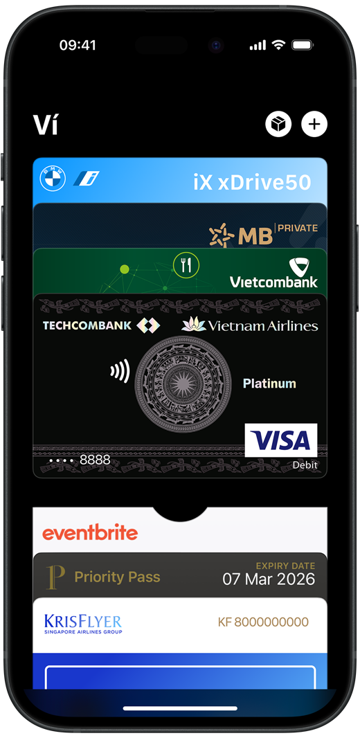 Ứng dụng Ví hoạt động ngay trên iPhone của bạn. Đây là nơi lưu trữ an toàn cho thẻ tín dụng, thẻ ghi nợ hoặc thẻ nội địa, thẻ giao thông công cộng, vé máy bay, vé sự kiện, chìa khóa xe hơi và hơn thế nữa, tất cả ở cùng một nơi. Và tất cả đều tương thích với iPhone hoặc Apple Watch, nhờ vậy mà bạn có thể mang ít đồ hơn nhưng lại làm được nhiều việc hơn.