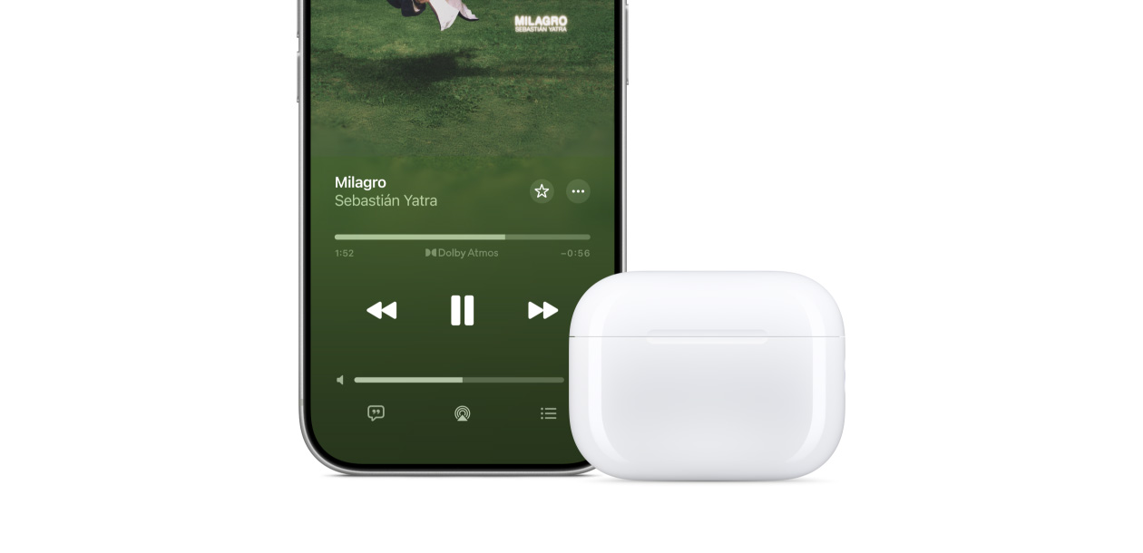 Los AirPods Pro 3 vienen con Ecualización Adaptativa de última generación que permite personalizar el uso de los dispositivos de acuerdo con la geometría única de tus orejas. Además, Volumen Personalizado usa el aprendizaje automático para entender tus patrones de escucha y así adaptarlos mejor a tus preferencias a lo largo del tiempo.17