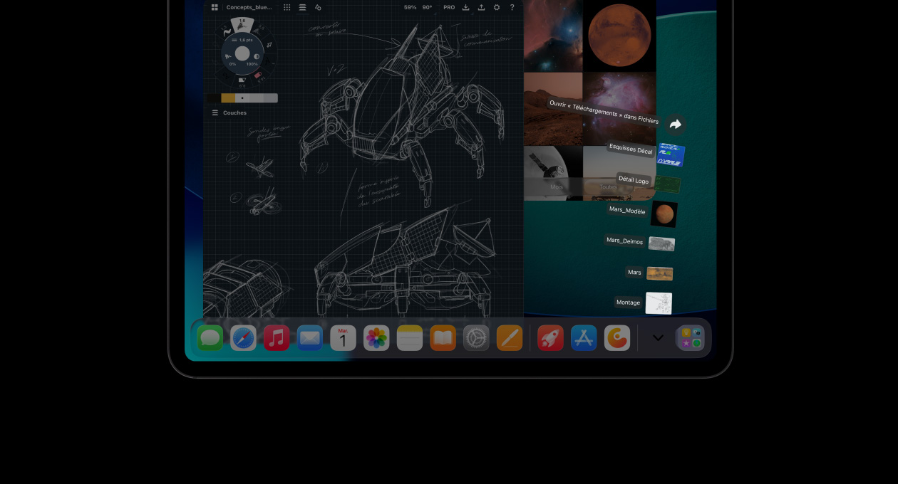 Dé­couvrez iPadOS 26, son sublime nouveau design avec Liquid Glass ainsi que de brillantes amé­liorations qui propulsent la producti­vité de l’iPad Pro vers de nouveaux sommets. Le nouveau système intuitif de gestion des fenê­tres vous offre une grande liberté et encore plus de flexibilité. Utilisez des apps pour travailler, jouez à des jeux hautes performances et lancez-vous dans des projets créatifs de toute taille en profitant d’une interface tactile ultra‑intuitive.