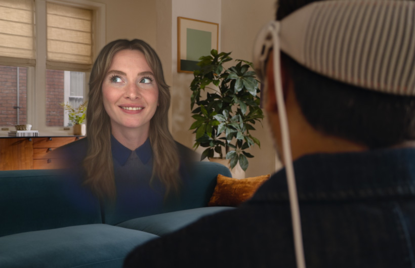 EyeSightにより、近くにいる人にはあなたがアプリを使っている時や、フルイマーシブな体験をしている時がわかります。誰かが近づいてくると、Apple Vision Proがすぐに相手を見えるようにして、相手からもあなたの目を見えるようにします。