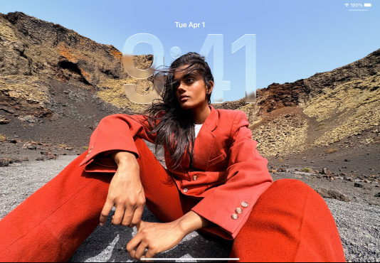 Explore iPad iPad and iPad Air, side-by-side, iPad Air in front overlapping iPad, portrait orientation, Lock Screen shows time in translucent Liquid Glass