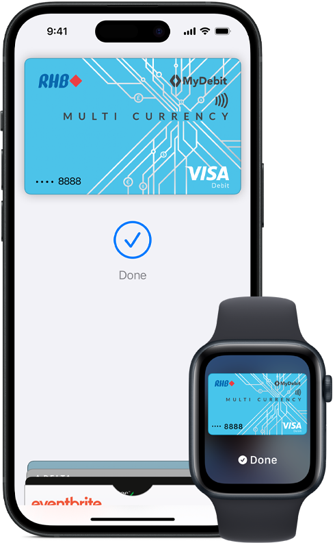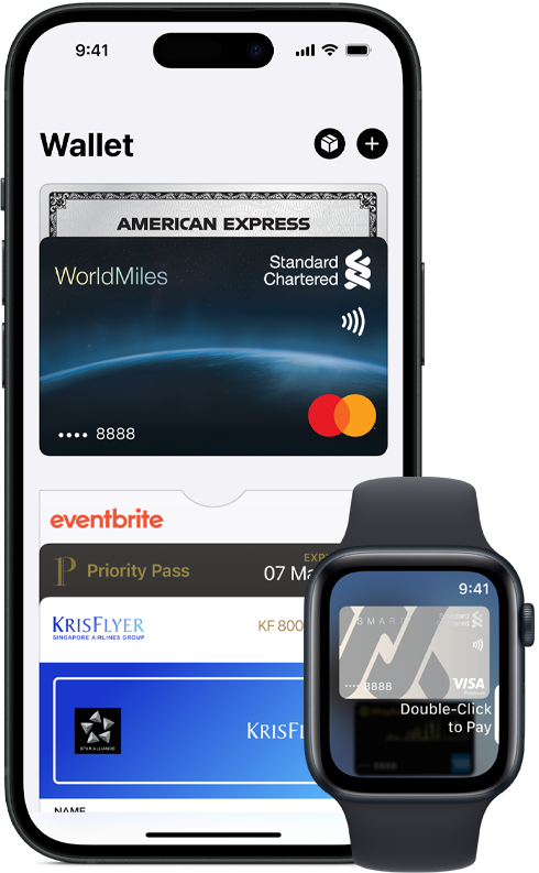 Set up in seconds. Directly on your iPhone. Apple Pay is built into iPhone, Apple Watch, Mac and iPad. Start by adding your credit or debit card to the Wallet app on your iPhone, and you’ll have the option to add it to your other devices in one easy step. When you want to pay, just double-click, tap and you’re set. You still get your card’s rewards and benefits — so you won’t miss out on any hard-earned points or miles.