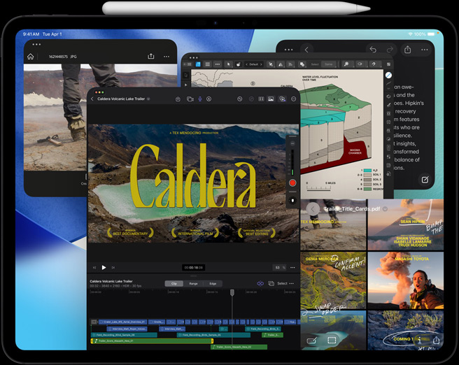 Fotografe, edite e partilhe num único dispositivo através do sistema de câmaras Pro com Sensor LiDAR, dos microfones com qualidade de estúdio e dos quatro altifalantes. Capte vídeo 4K ProRes, grave um podcast e escolha o microfone certo para cada app no seletor de entrada.
