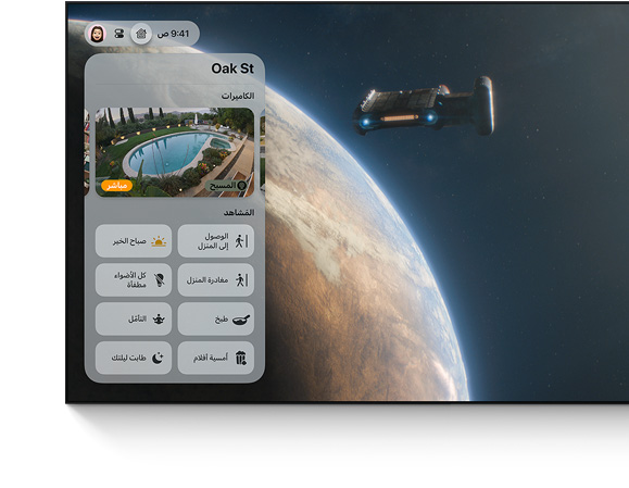 كل ما في المنزل تحت أمرك. مع مركز التحكم الذكي، ستجد جميع اكسسواراتك المتصلة في مكان واحد. فجهاز Apple TV 4K يعمل بسلاسة مع الاكسسوارات التي تدعم HomeKit‏، ويتيح لك ربط المزيد من الأجهزة عبر منصات أكثر من أي وقت باستخدام Matter‏16، وهو معيار الاتصال للمنازل الذكية. وبفضل إمكانية الوصول عن بُعد، تستطيع التحكم في منزلك الذكي من خلال تطبيق المنزل، أينما كنت وعلى أجهزة Apple الأخرى.