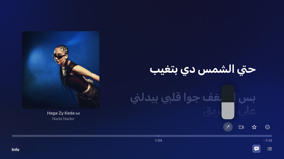 بفضل ميزة الصوت المكاني، تشعر كأن أصوات Dolby Atmos‏10 و5.1 و7.1 المحيطية الغنية آتية من كل ناحية وصوب، كما أنها تضبط ما تستمع إليه في الوقت الفعلي. ويمكنك أيضاً توصيل سماعات AirPods لتعيش تجربة مشاهدة سينمائية تناسب ذوقك مع صوت يتبع حركة رأسك.